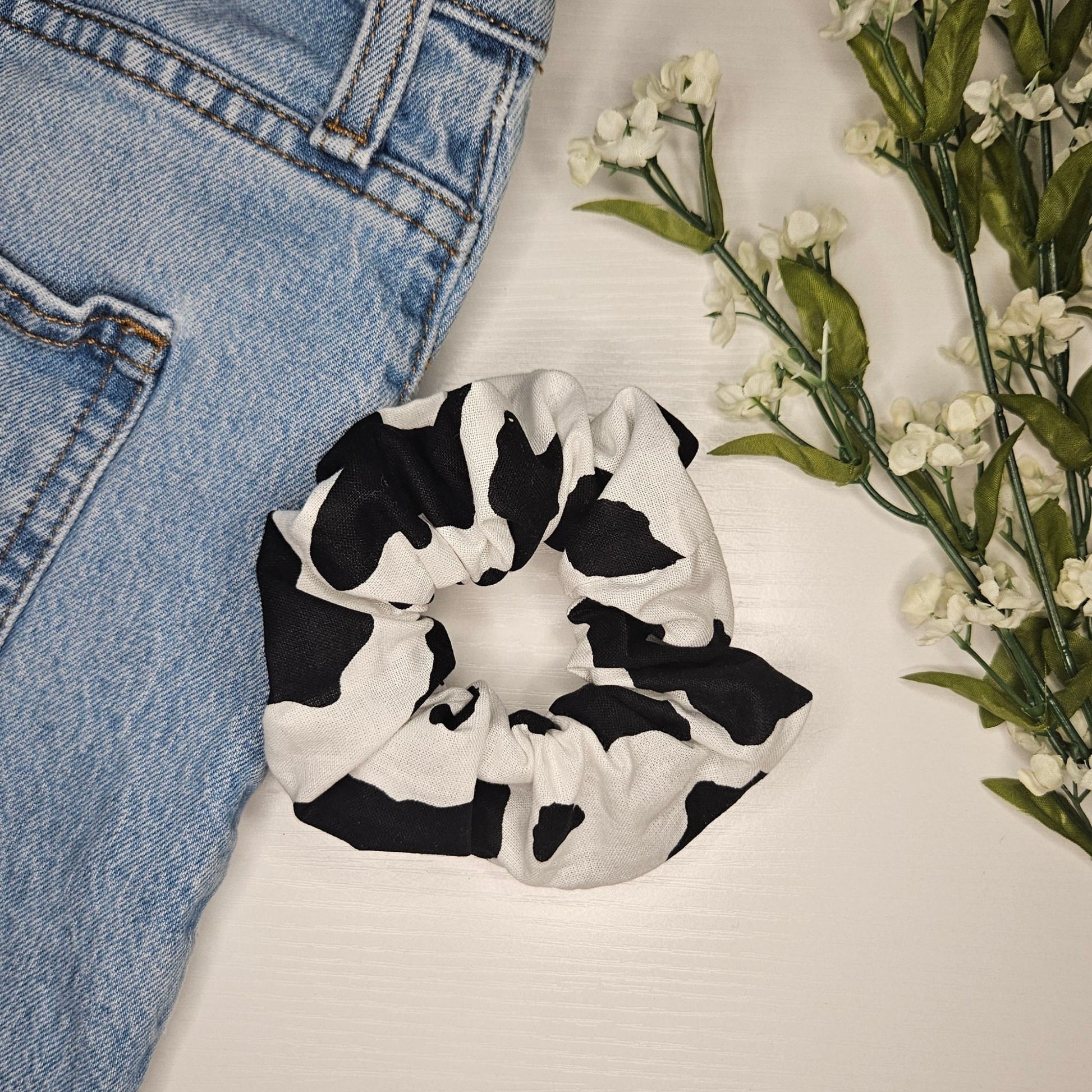 Add a playful touch to your hair with our Handmade Cow Print Scrunchie. Designed with soft, durable fabric, this trendy accessory is perfect for securing your ponytail or bun while adding a pop of personality to your everyday look. Bring a fun, trendy country twist to your hairstyle with our Cow Print Scrunchie β a soft, stretch-friendly hair accessory that blends playful pattern with reliable function.